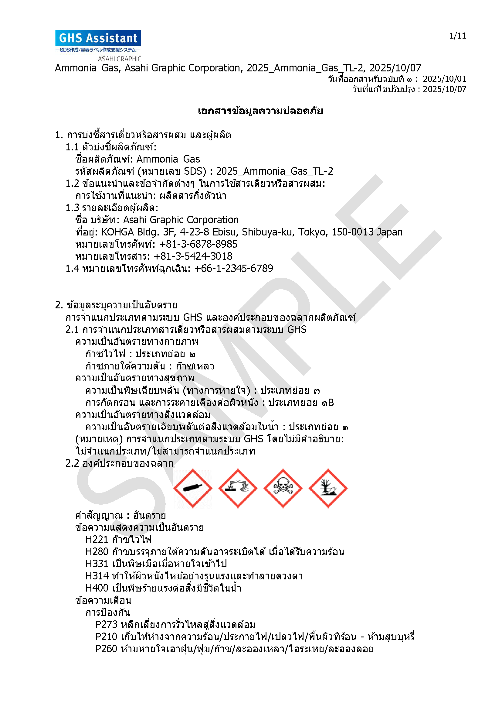 半導体製造に用いられるアンモニアガスのタイ向けタイ語SDSです。